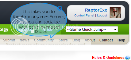Help bubbles pop-up when you hover your mouse over a link (community, about, help, blog, submit etcc,.) and gives you a short but helpful description about where the link takes you, and what you do there.